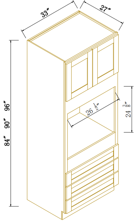 27" Deep Oven Cabinet With 3 Drawers - 33"W *96"H * 27"D