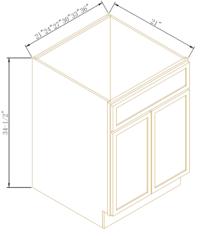 Vanity Sink Base -36"W * 34-1/2"H * 21"D - 1 False Drawer