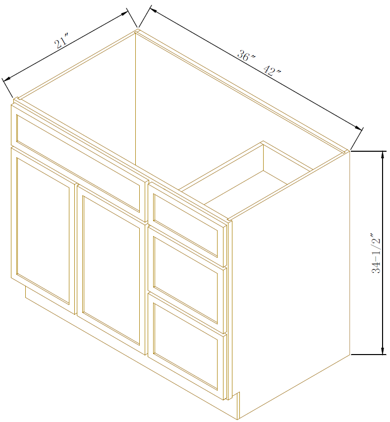 Vanity Sink Combo -42"W * 34-1/2"H * 21"D - 3 Drawers Right