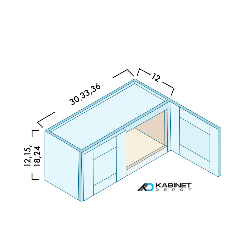 Wall Pie Cut Corner Cabinets - Custom Shaker