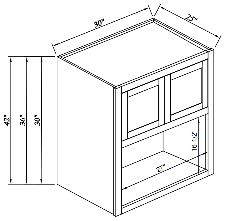 25" Deep Refrigerator Wall Cabinets - Inset Brown