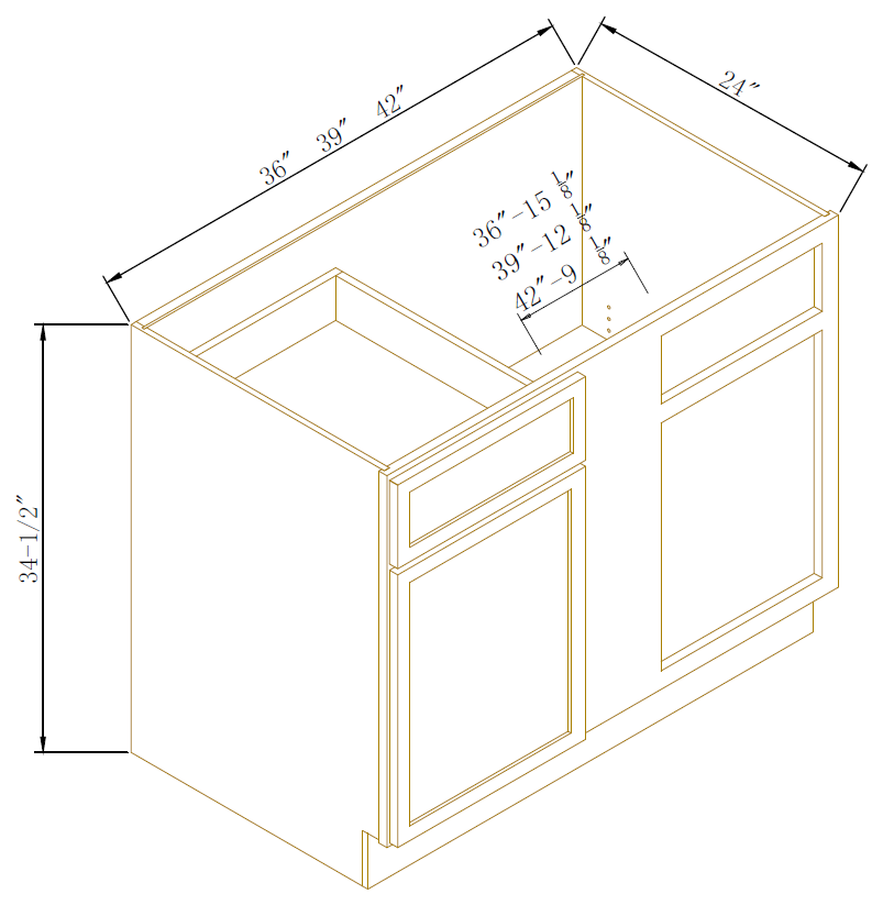 Drawer Construction5/8” Solid Wood Dovetail drawer box with 1/2” Solid Plywood drawer bottom