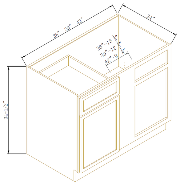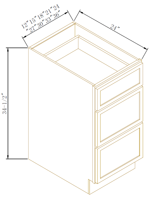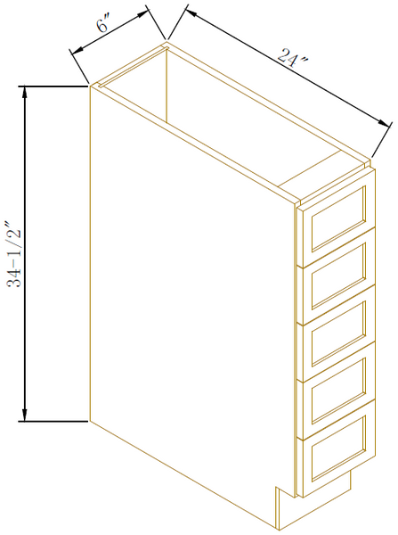Drawer Construction5/8” Solid Wood Dovetail drawer box with 1/2” Solid Plywood drawer bottom