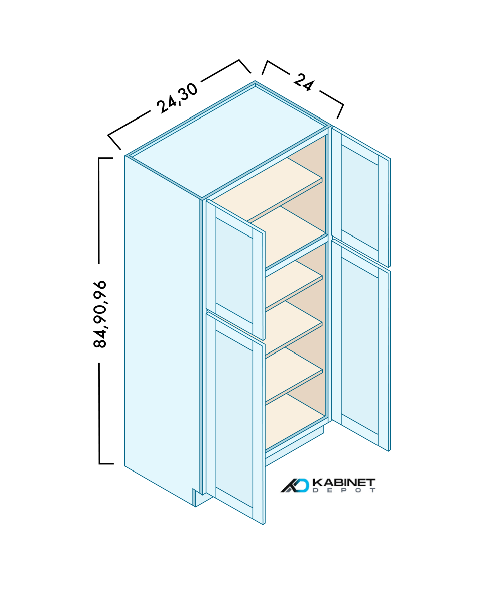 Double Door Tall Pantry Cabinets - Ashen Gray