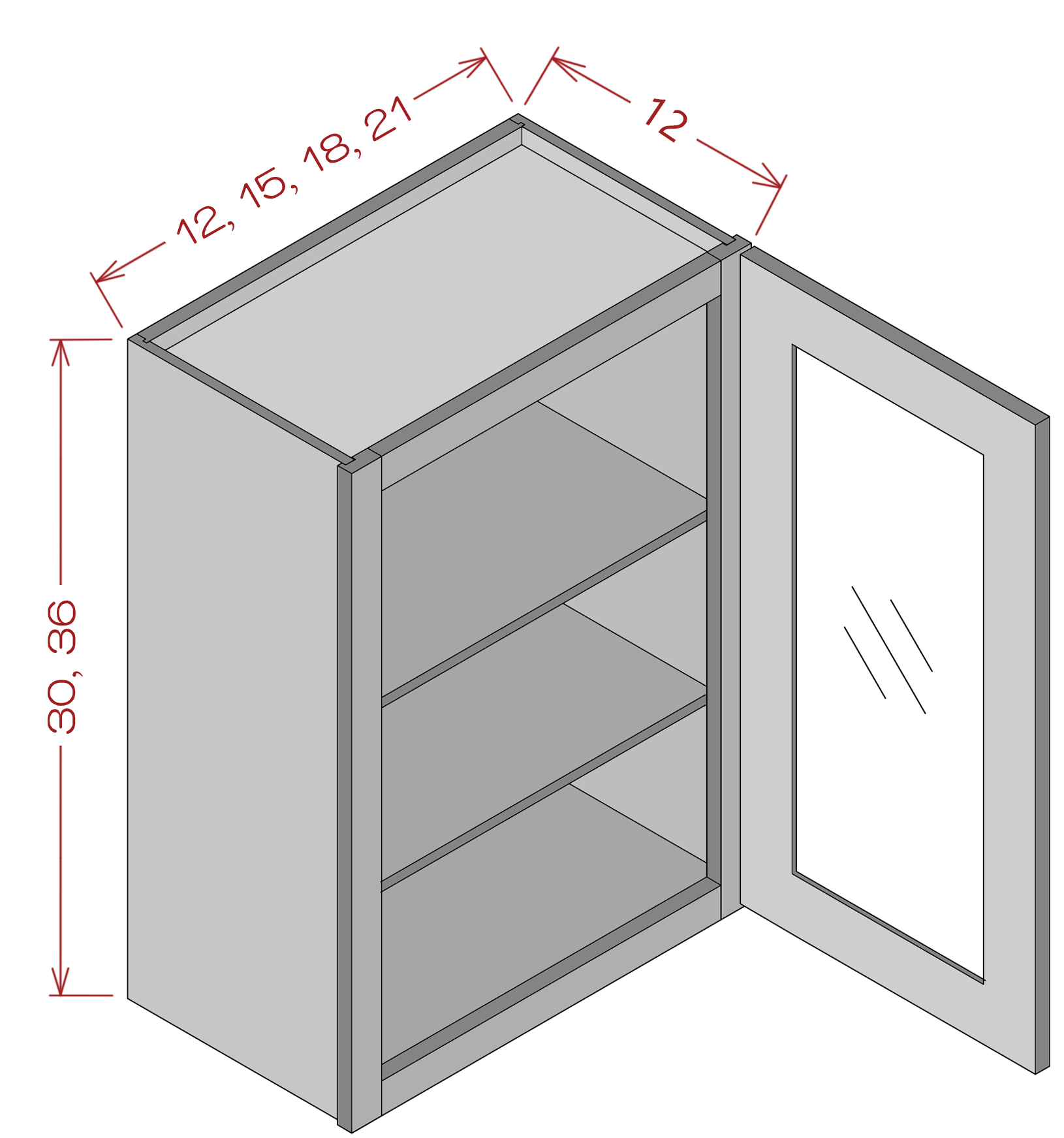 36" High Single Door Wall Cabinets - Shaker Sapphire